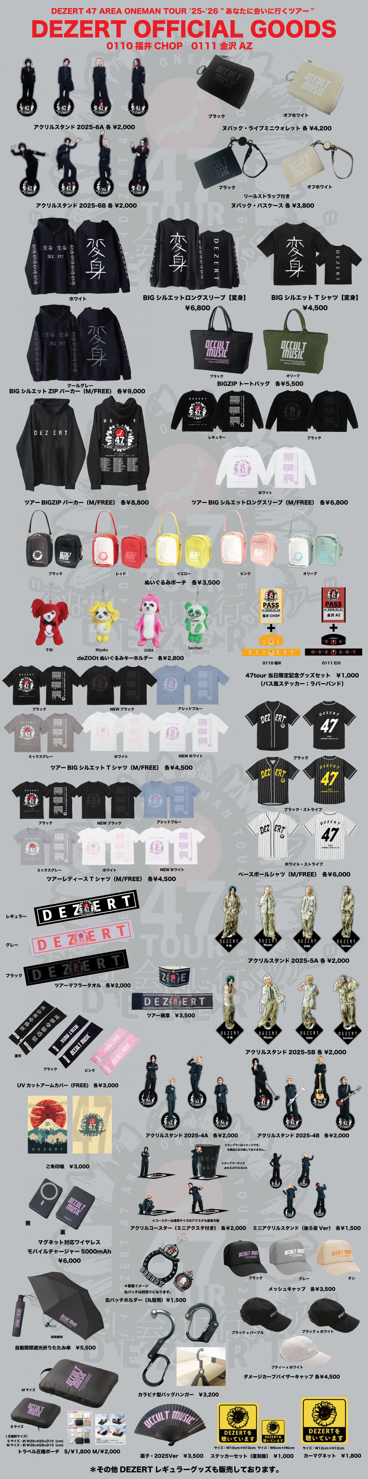 DEZERT 47 AREA ONEMAN TOUR '25-'26 "あなたに会いに行くツアー" 1/10福井・1/11金沢公演 LIVE GOODS情報!