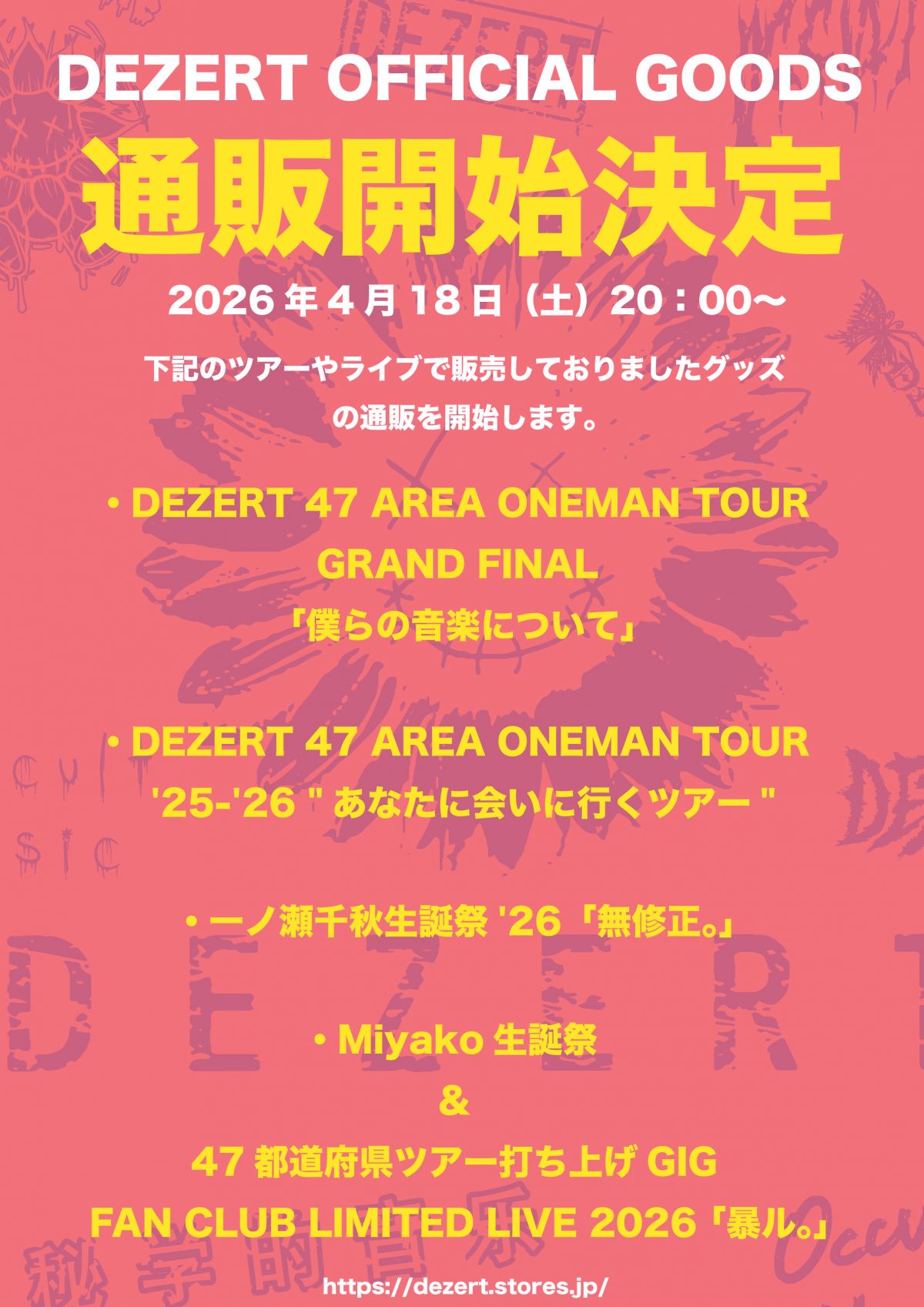 47 TOUR GRAND FINAL 「僕らの音楽について」/ 47 AREA ONEMAN TOUR '25-'26 "あなたに会いに行くツアー" / 一ノ瀬千秋生誕祭'26「無修正。」/ Miyako生誕祭 & 47都道府県ツアー打ち上げGIG 「暴ル。」 4公演のLIVE GOODS通販決定!
